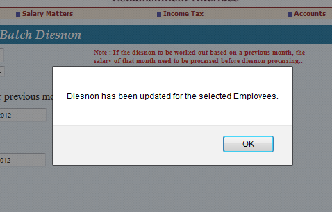 ഓരോ സാമ്പത്തിക വര്ഷത്തിന്റേയും തുടക്കത്തില് (അതായത് മാര്ച്ച് മാസത്തെ ശമ്പളം തയ്യാറാക്കുമ്പോള്) തന്നെ എല്ലാ ജീവനക്കാരോടും Anticipated Tax Calculation Statement തയ്യാറാക്കി സമര്പ്പിക്കുവാന് DDO ആവശ്യപ്പെടണം. ഇതുപ്രകാരം ഒരു ജീവനക്കാരന് നികുതി ബാധ്യത വരികയാണെങ്കില്, വരുന്ന ആകെ നികുതിയെ 12 കൊണ്ട് ഹരിച്ച് തുല്യ പ്രതിമാസ ഗഡുക്കളായി നികുതി പിടിക്കണം. സൗകര്യാര്ത്ഥം ഈ നികുതിയെ അടുത്ത 50ലേക്കോ 100ലേക്കോ റൗണ്ട് ചെയ്യാവുന്നതാണ്. 2012-13 സാമ്പത്തിക വര്ഷത്തേക്കുള്ള നികുതി നിരക്കുകള് താഴെകാണും പ്രകാരമാണ് (സ്ത്രീകള്ക്ക് ഈ വര്ഷത്തേക്ക് വേറെ നിരക്കില്ല എന്നോര്ക്കുക)